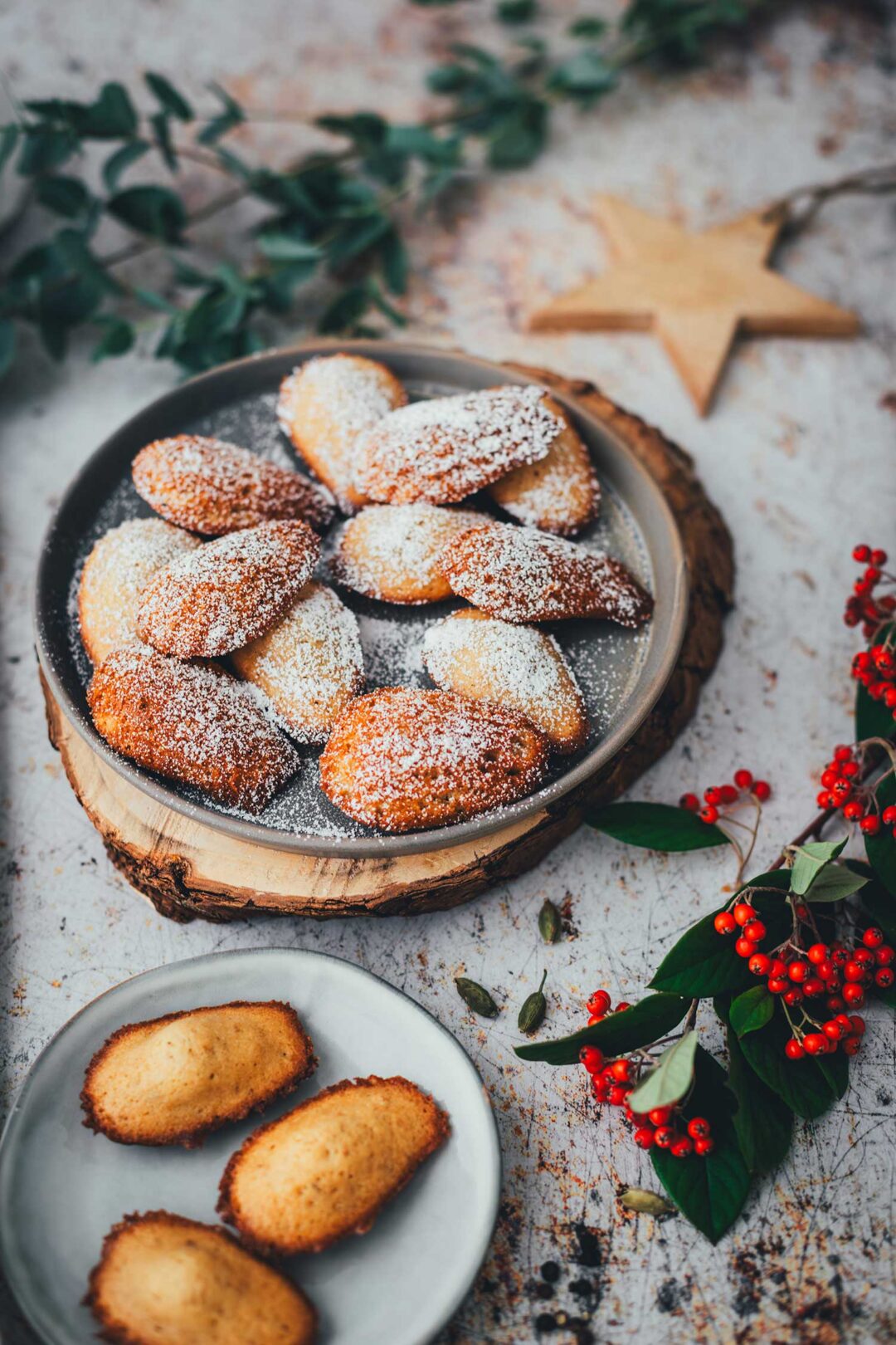Ich liebe Madeleines und für mich gehören sie zu den unkompliziertesten Kleingebäcken überhaupt. Man muss den Teig nur anrühren, kurz kühlen, dann backen und fertig. Meine heutige Version bekommt dazu ein weihnachtliches Upgrade aus Honig, Lebkuchengewürz und einem Hauch Kardamom. So werden sie weich, saftig und aromatisch, ohne übertrieben weihnachtlich zu schmecken. Damit sind sie perfekt für alle, die eine Abwechslungs zu klassischen Plätzchen suchen oder einfach Lust auf leckeres Gebäck in der Adventszeit haben! Mit der Abwandlung mit Chai-Gewürz schmecken die Madeleines auch hervorragend außerhalb der Weihnachtszeit.